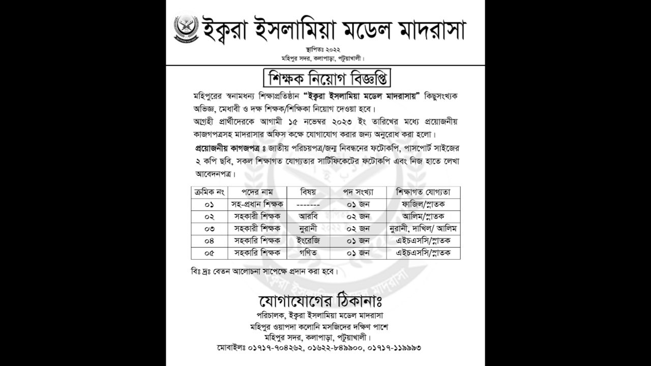 চুক্তির মেয়াদ : প্রথমে ১ বছরের জন্য চুক্তিভিত্তিক নিয়োগ দেওয়া হবে। এরমধ্যে তিন/ছয় মাস শিক্ষানবিশ হিসেবে কাজ করতে হবে। বিজ্ঞপ্তি অনুসারে চূড়ান্ত নিয়োগপ্রাপ্তদের ঢাকা ও তার আশেপাশে কাজ করতে হবে।