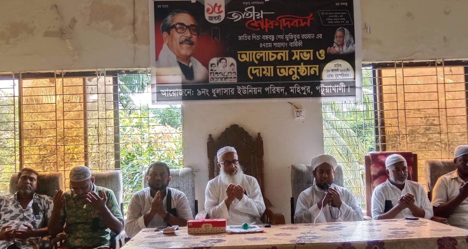 রিপোর্ট- মাইনুদ্দিন আল আতিক : সমালোচনার মুখে অবশেষে পটুয়াখালীর মহিপুর থানাধীন ধুলাসার ইউপিতে শোক দিবস উপলক্ষ্যে আলোচনা সভা ও দোয়া মাহফিল অনুষ্ঠিত হয়েছে।
