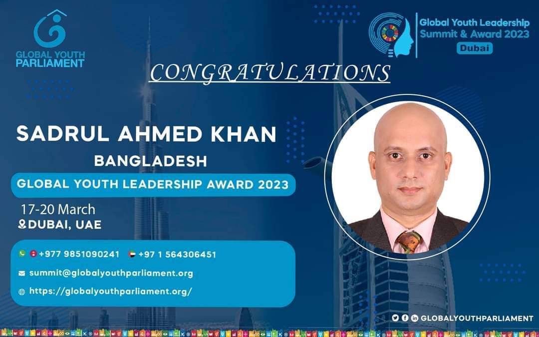 গ্লোবাল ইয়ুথ লিডারশিপ অ্যাওয়ার্ড পাচ্ছেন আ’লীগ নেতা সাদরুল