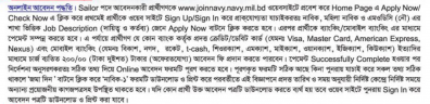আবেদনের নিয়ম: আগ্রহী প্রার্থীদের বাংলাদেশ নৌবাহিনীর নির্দিষ্ট ওয়েবসাইট joinnavy.navy.mil.bd এর মাধ্যমে আবেদন করতে হবে।