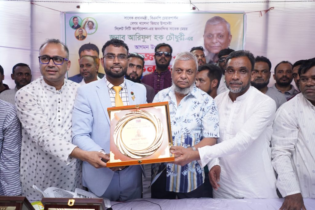 অনুষ্ঠানে প্রধান অতিথি আরিফুল হক চৌধুরীকে ফুল এবং ক্রেস্ট প্রদান করেন বোয়ালজুড় ইউনিয়ন যুবদলের সভাপতি ছাদেক আহমদ।