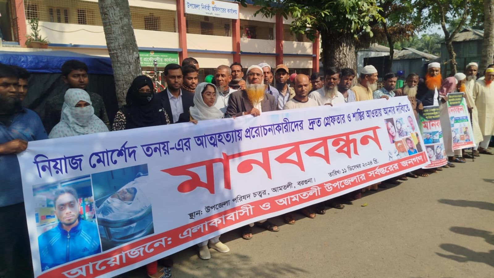 আমতলীতে আলোচিত আত্মহত্যা প্ররোচনায় জড়িতদের গ্রেফতারের দাবিতে মানববন্ধন