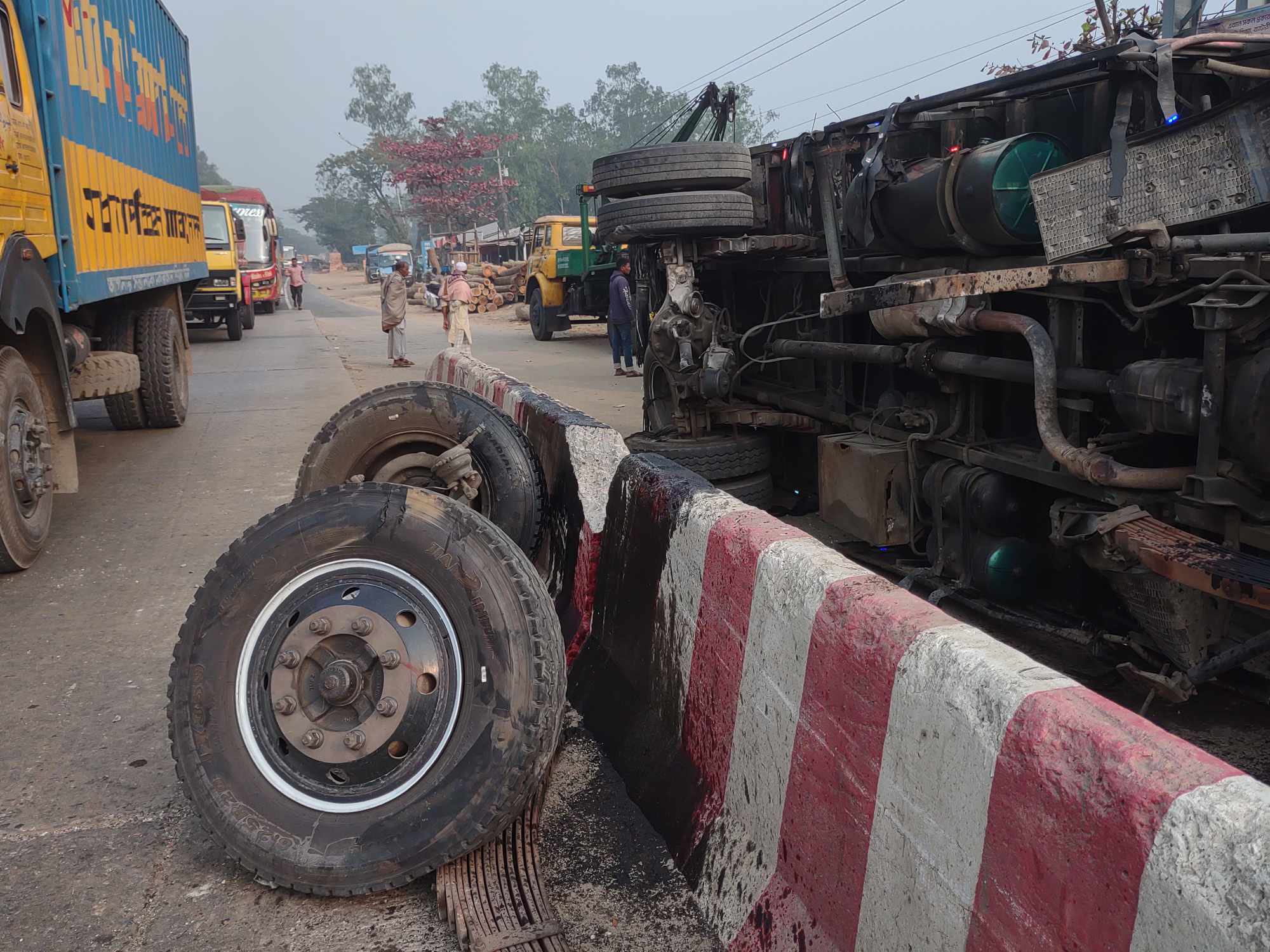 দুর্ঘটনাকবলিত লেগুনাচালক নুরুল মোস্তফা বলেন, বুধবার সকাল ৭টার দিকে গাড়িতে যাত্রী তুলতে রাস্তার পাশে দাঁড়াই। এ সময় আক্তার হোসেন আমার গাড়ির পাশে বাইক থামিয়ে কিছু পণ্য নিতে দরদাম করছিলেন। হঠাৎ কয়লাবোঝাই একটি ট্রাক নিয়ন্ত্রণ হারিয়ে সড়কের পাশের ডিভাইডারে এসে আছড়ে পড়ে উল্টে যায়। এতে চাপা পড়ে ঘটনাস্থলে এক রেস্তোরা ব্যবসায়ী মো. আক্তার হোসেন নামে নিহত হন।