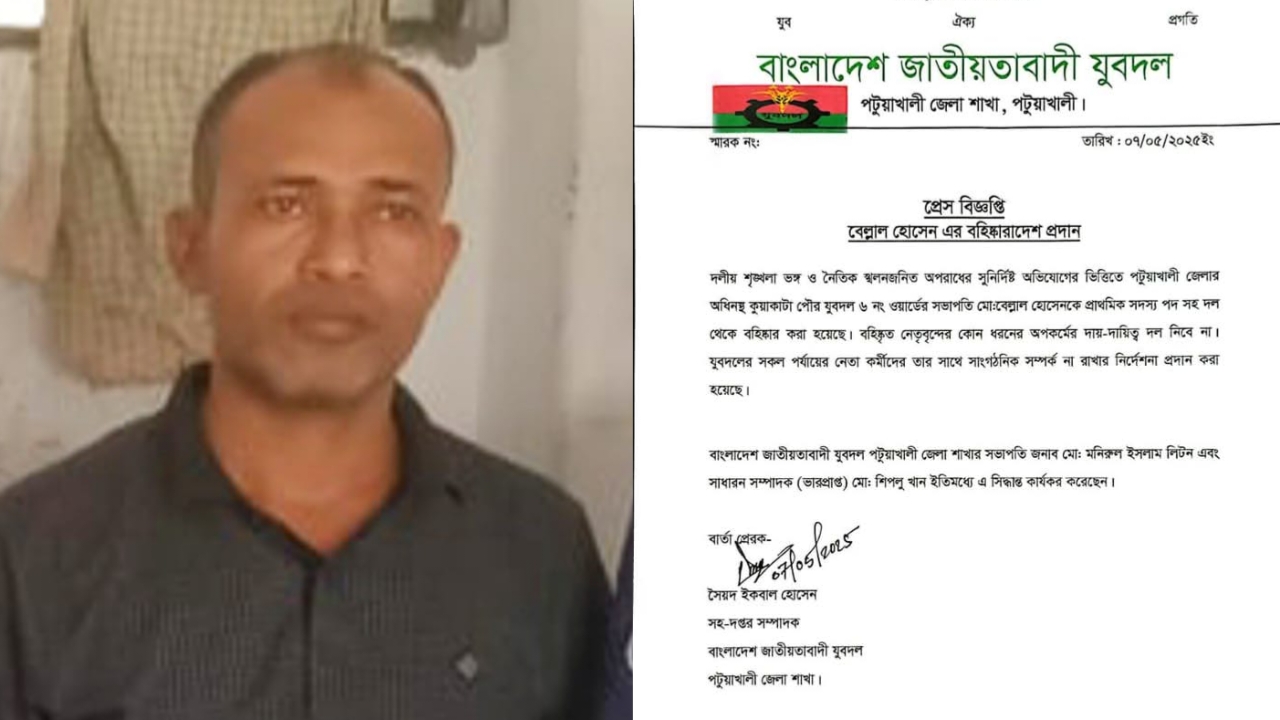 জেলা যুবদলের একাধিক সূত্র জানায়, ঘটনার সঙ্গে যুবদল নেতা মো. বেলাল হোসেনের জড়িত থাকার সুস্পষ্ট প্রমাণ পাওয়ার পরই তাকে বহিষ্কারের সিদ্ধান্ত নেওয়া হয়।