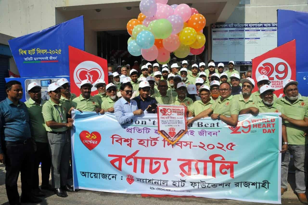 ন্যাশনাল হার্ট ফাউন্ডেশন, রাজশাহীর উদ্যোগে সোমবার (২৯ সেপ্টেম্বর) সকালে নানা কর্মসূচির মধ্য দিয়ে দিবসটি উদযাপিত হয়।