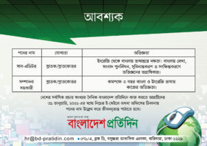 আবেদন যেভাবে : আগ্রহীদের আবেদনপত্র পাঠাতে হবে hr@bd-pratidin.com এই ঠিকানায়।