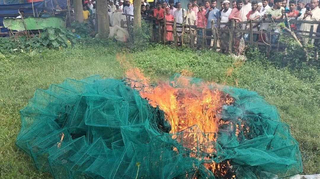 মহিপুরে ৩ হাজার মিটার অবৈধ চায়না দুয়ারী জাল জব্দ
