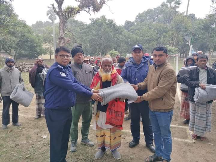 নৈশ্য প্রহরীদের মাঝে শীতবস্ত্র বিতরণ করলেন ওসি জাহিদ ইকবাল