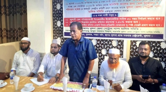শেখ নাসির উদ্দিন, খুলনা ব্যুরো: জ্বালানী তেল বিক্রির উপর কমিশন বৃদ্ধিসহ ৩ দফা দাবি ৩১ আগস্ট মধ্যে বাস্তবায়ন না হলে
