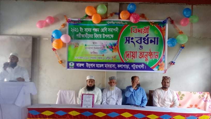কলাপাড়া (পটুয়াখালী) প্রতিনিধিঃ দারুল ইহসান ট্রাষ্ট কর্তৃক পরিচালিত দারুল ইহসান মডেল মাদরাসার পঞ্চম শ্রেণির পরীক্ষার্থীদের বিদায়ী সংবর্ধনা ও দোয়া অনুষ্ঠিত