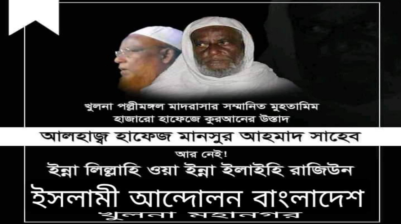 খুলনায় হাফেজ মানসুর আহমেদের মৃত্যুতে ইসলামী আন্দোলনের শোক
