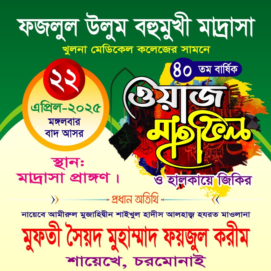 খুলনা ফজলুল উলুম মাদ্রাসার বাৎসরিক মাহফিল কাল, প্রধান অতিথি শায়েখে চরমোনাই
