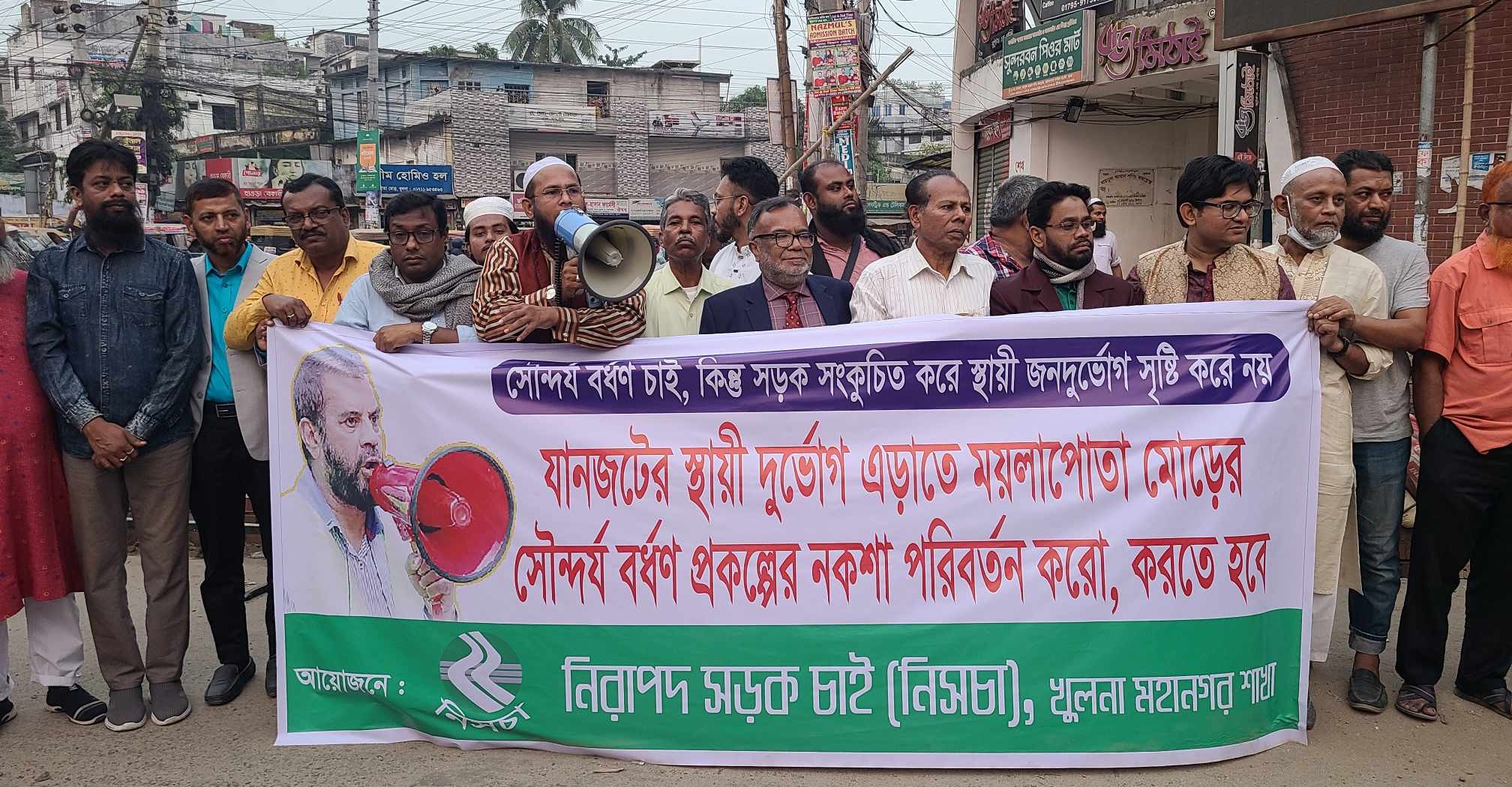 খুলনায় সৌন্দর্যবর্ধনের নামে রাস্তা সংকুচিত, প্রতিবাদে মানববন্ধন ও সমাবেশ