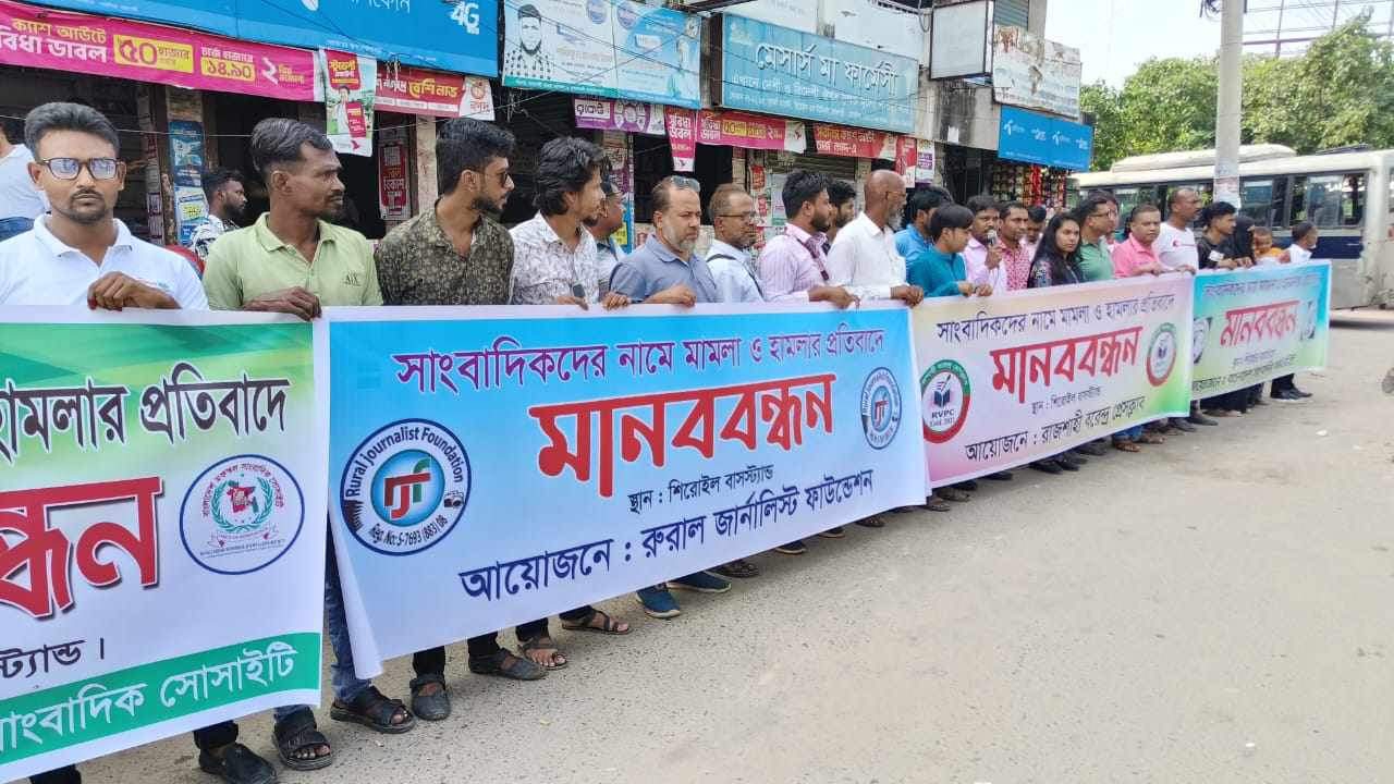 রাজশাহীতে সাংবাদিকের উপর হামলা ও মামলার প্রতিবাদে ১০ সংবাদিক সংগঠনের মানববন্ধন