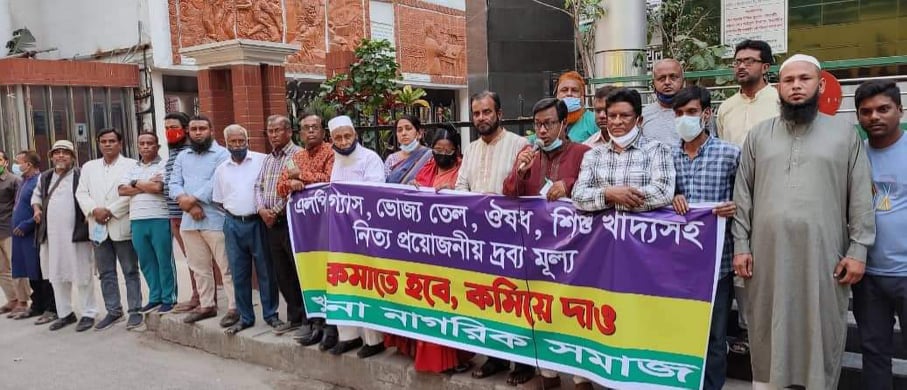নিত্যপ্রয়োজনীয় দ্রব্যমূল্যের ঊর্ধ্বগতির প্রতিবাদে মানববন্ধন খুলনা নাগরিক সমাজের