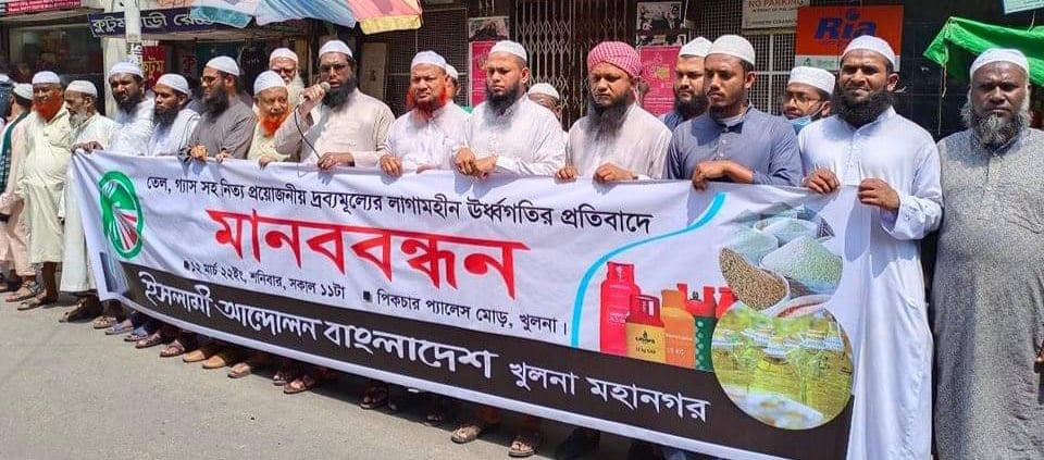 খুলনায় দ্রব্যমূল্যের উর্ধ্বগতির প্রতিবাদে ইসলামী আন্দোলনের মানববন্ধন