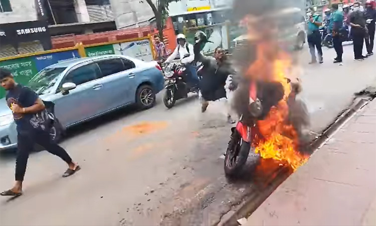পুলিশের মামলা : ক্ষুব্ধ হয়ে নিজের মোটরসাইকেলে আগুন