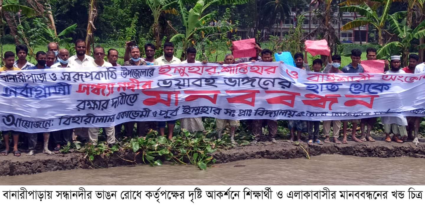 বানারীপাড়ায় সন্ধ্যা নদীর ভাঙন রোধে কার্যকরী পদক্ষেপের দাবিতে মানববন্ধন