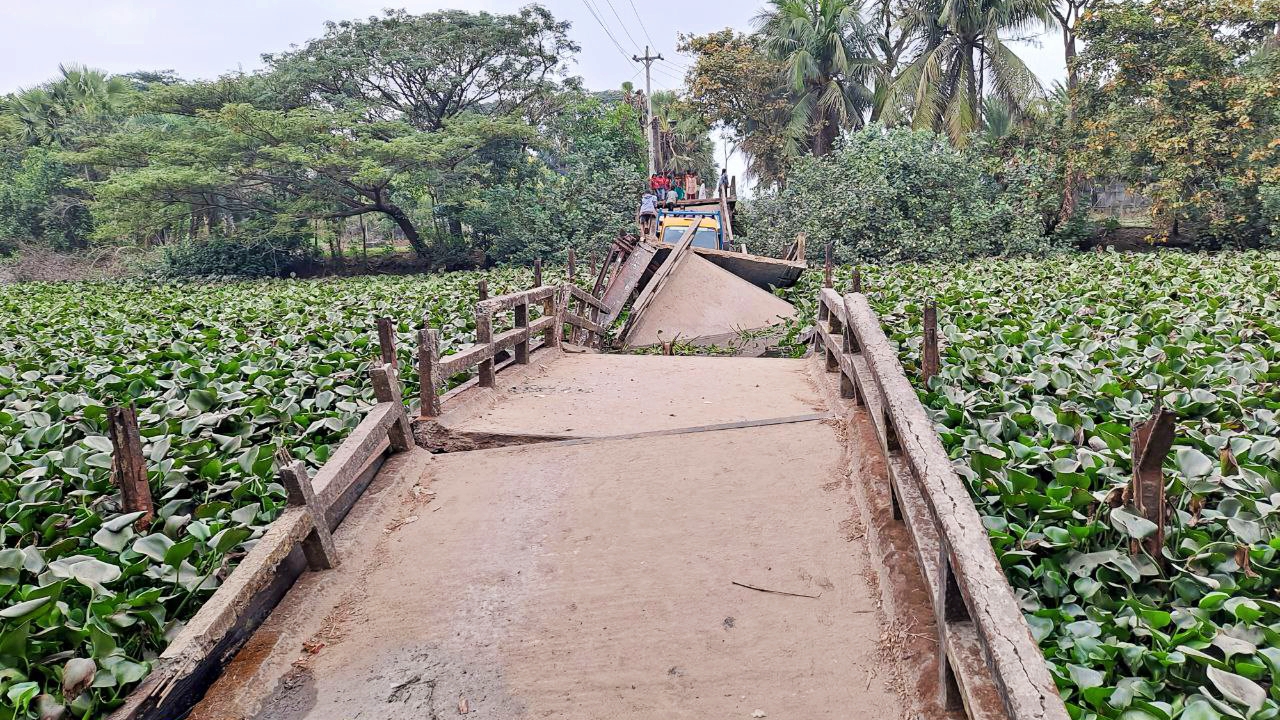 মালবাহী ট্রাক নিয়ে ধ্বসে গেল সাধুর ব্রিজ, ভোগান্তিতে পর্যটকসহ স্থানীয়রা