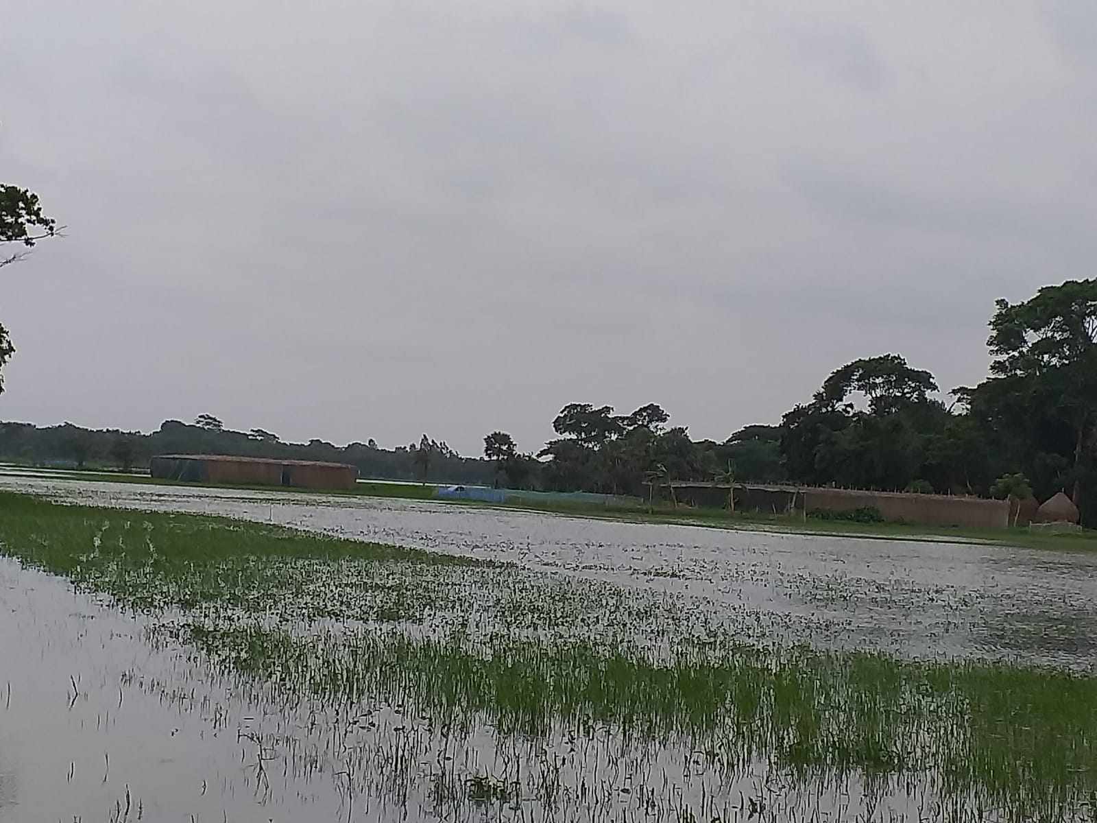 গলাচিপায় টানা বৃষ্টিতে পানির নিচে আমনের বীজতলা