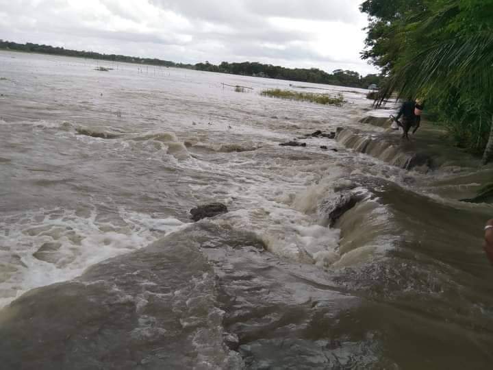 কলাপাড়ায় বাঁধ ভেঙে জোয়ারের পানি প্রবেশ, পানির নিচে শতাধিক ঘরবাড়ি