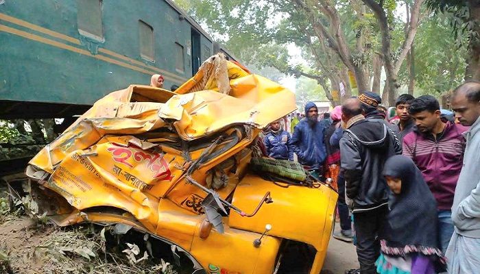 সরিষাবাড়ীতে লেবেল ক্রসিং পার হতে গিয়ে ট্রেনের ধাক্কায় গুড়িয়ে গেলো ট্রাক