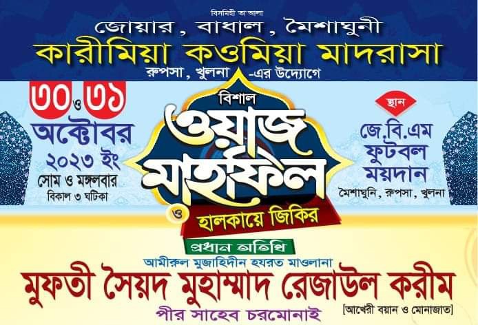 খুলনার রূপসা কারীমিয়া মাদ্রাসার দুইদিন ব্যাপী মাহফিল শুরু আজ, প্রধান অতিথি চরমোনাই পীর