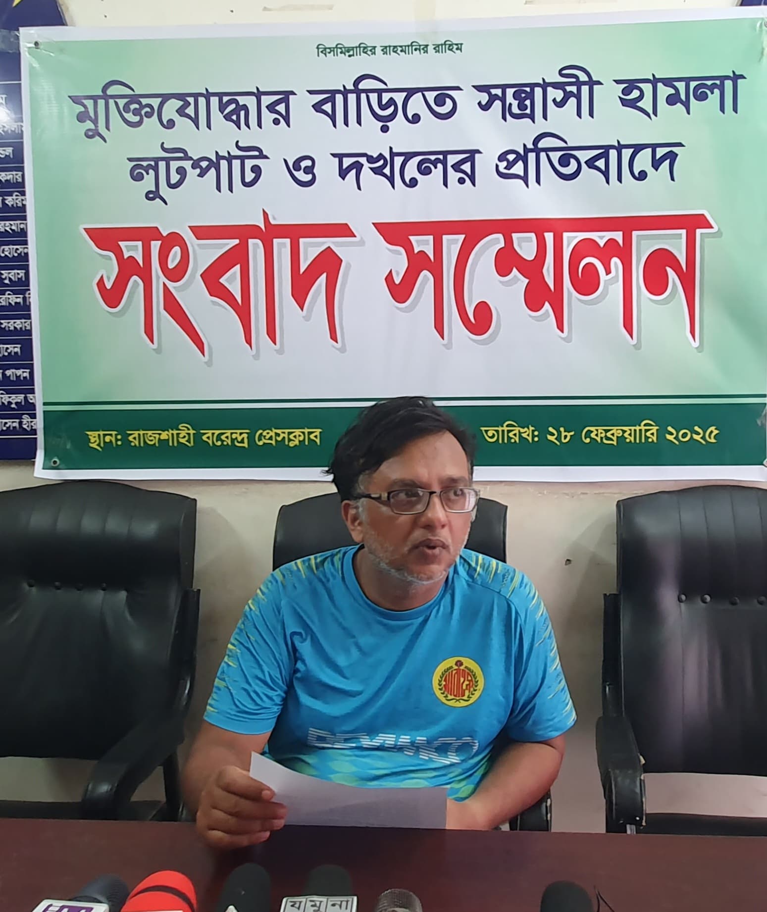 রাজশাহীতে মুক্তিযোদ্ধার বাড়িতে হামলা ও দখলের প্রতিবাদে সংবাদ সম্মেলন
