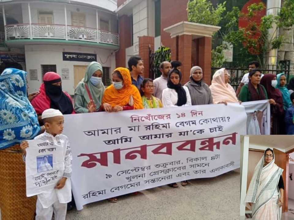 খুলনায় নিখোঁজের ১৪ দিনেও রহিমা বেগমের সন্ধান মেলেনি: সন্তান ও এলাকাবাসীর মানববন্ধন