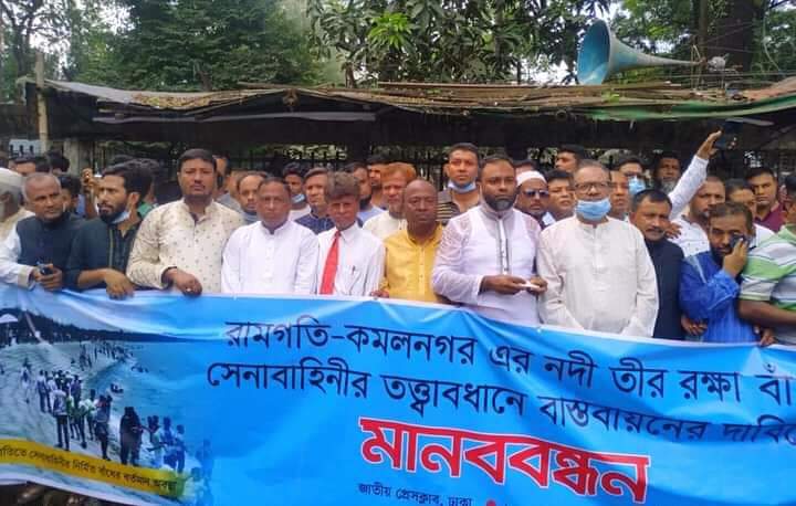 সেনাবাহিনীর তত্ত্বাবধানে বাঁধ নির্মাণের দাবিতে জাতীয় প্রেসক্লাবের সামনে রামগতি-কমলনগরবাসীর মানববন্ধন