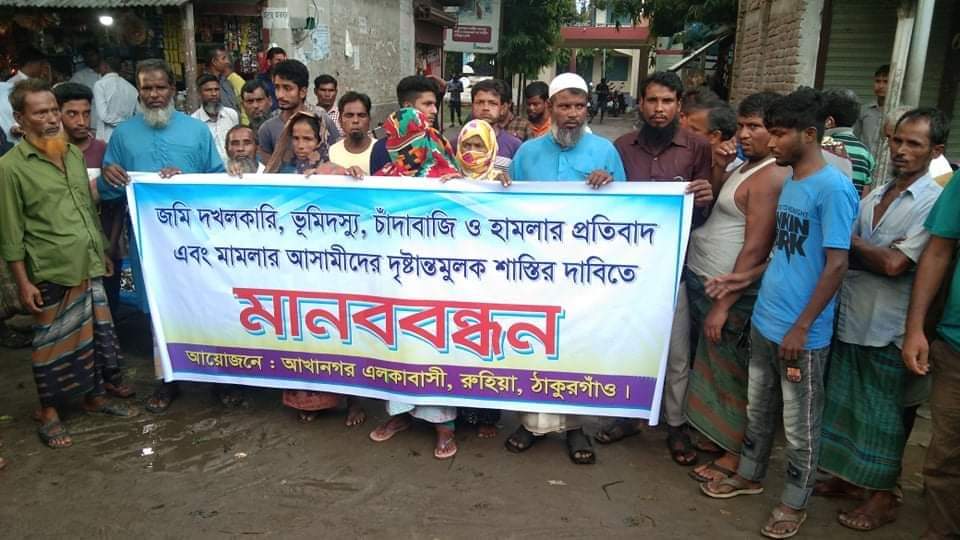 মোঃ আকতারুল ইসলাম আক্তার, ঠাকুরগাঁও জেলা প্রতিনিধিঃ দখলবাজ, ভুমিদস্যু, চাঁদাবাজি ও হামলার প্রতিবাদ এবং মামলার আসামীদের দৃষ্টান্তমুলক শাস্তির দাবিতে ঠাকুরগাঁওয়ে