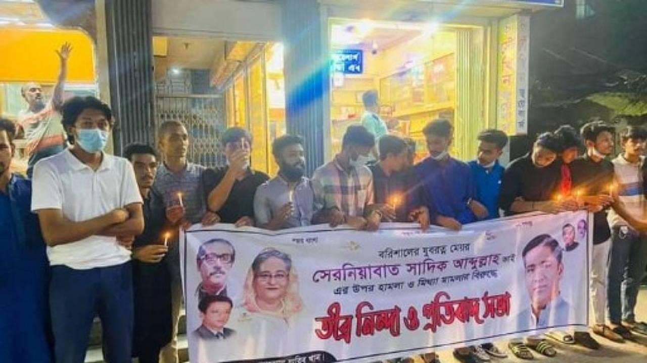 মোঃ রুবাইয়াত হক মেহেদী, পটুয়াখালী সদরঃ বরিশাল সিটি কর্পোরেশনের ১৫ আগস্টের ব্যানার অপসারণ নিয়ে বরিশাল সদর ইউএনও’র বাসার সামনে আওয়ামী