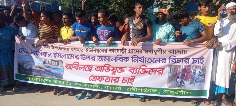 রাণীশংকৈলে নাসিরুল নির্যাতন মামলার আসামিদের গ্রেপ্তারের দাবিতে মানববন্ধন ও স্মারকলিপি প্রদান