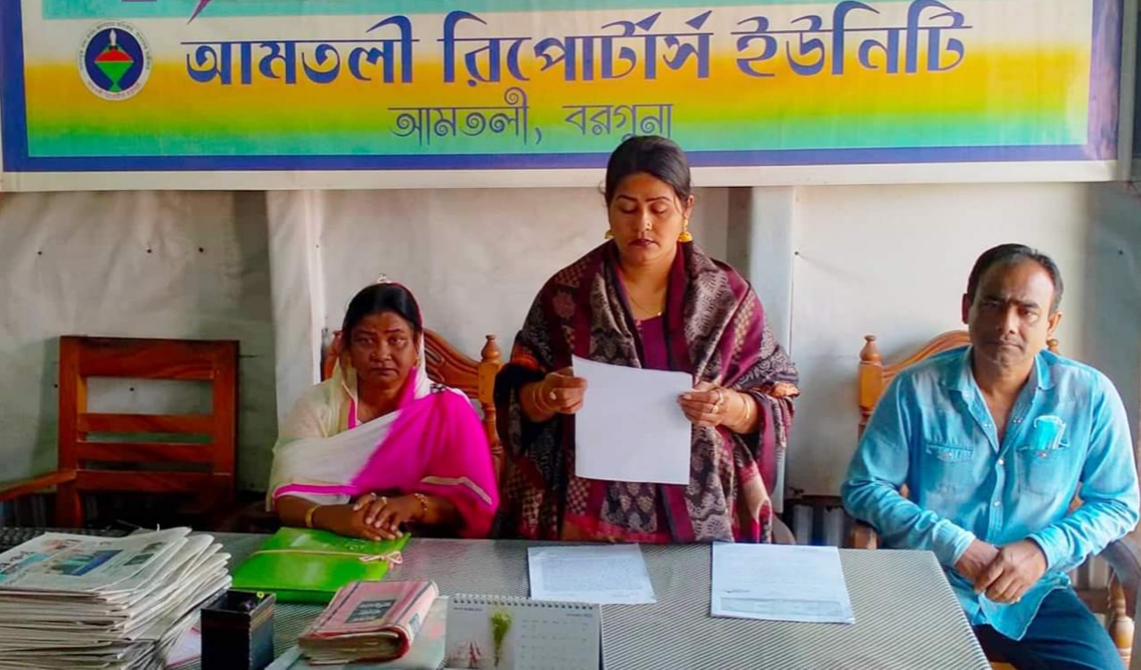 জমি চাষাবাদে বাঁধা; আমতলীতে দুই ইউপি চেয়ারম্যান কন্যার সংবাদ সম্মেলন