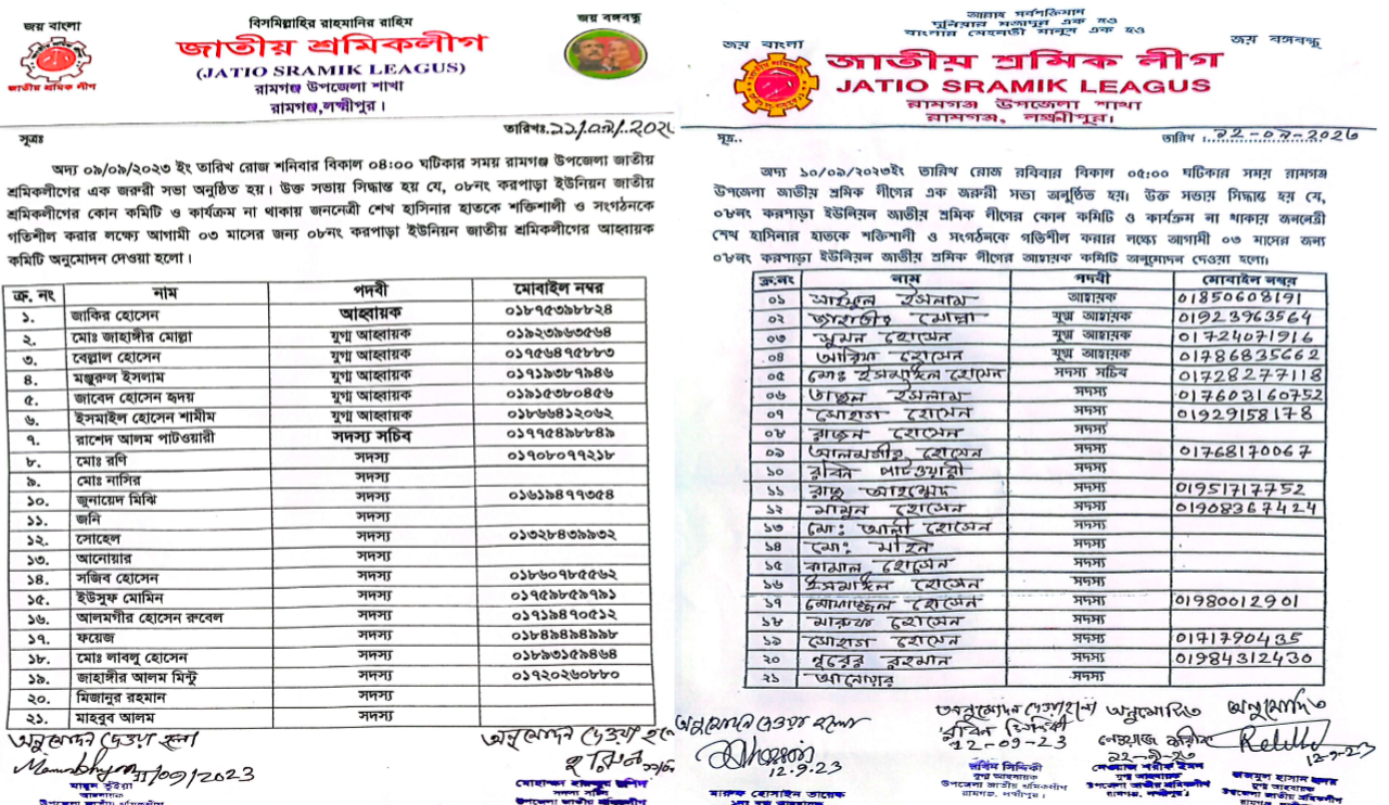রামগঞ্জে একই ইউনিয়নে শ্রমিক লীগের পাল্টাপাল্টি কমিটি