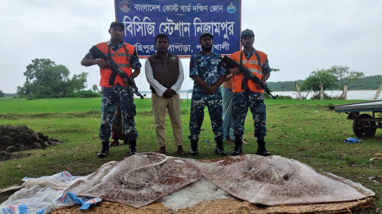 মহিপুরে প্রায় ৫০০ কেজি ওজনের দুটি শাপলাপাতা মাছ জব্দ