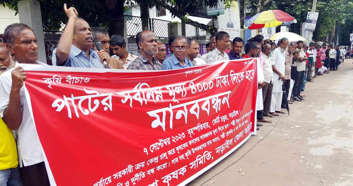পাট চাষীদের বাঁচাতে বাংলাদেশ কৃষক সমিতি নড়াইলের উদ্যোগে মানববন্ধন অনুষ্ঠিত