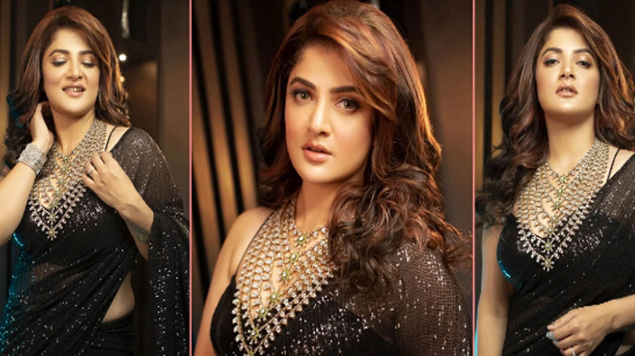 কালো শাড়িতে নজর কাড়লেন শ্রাবন্তী