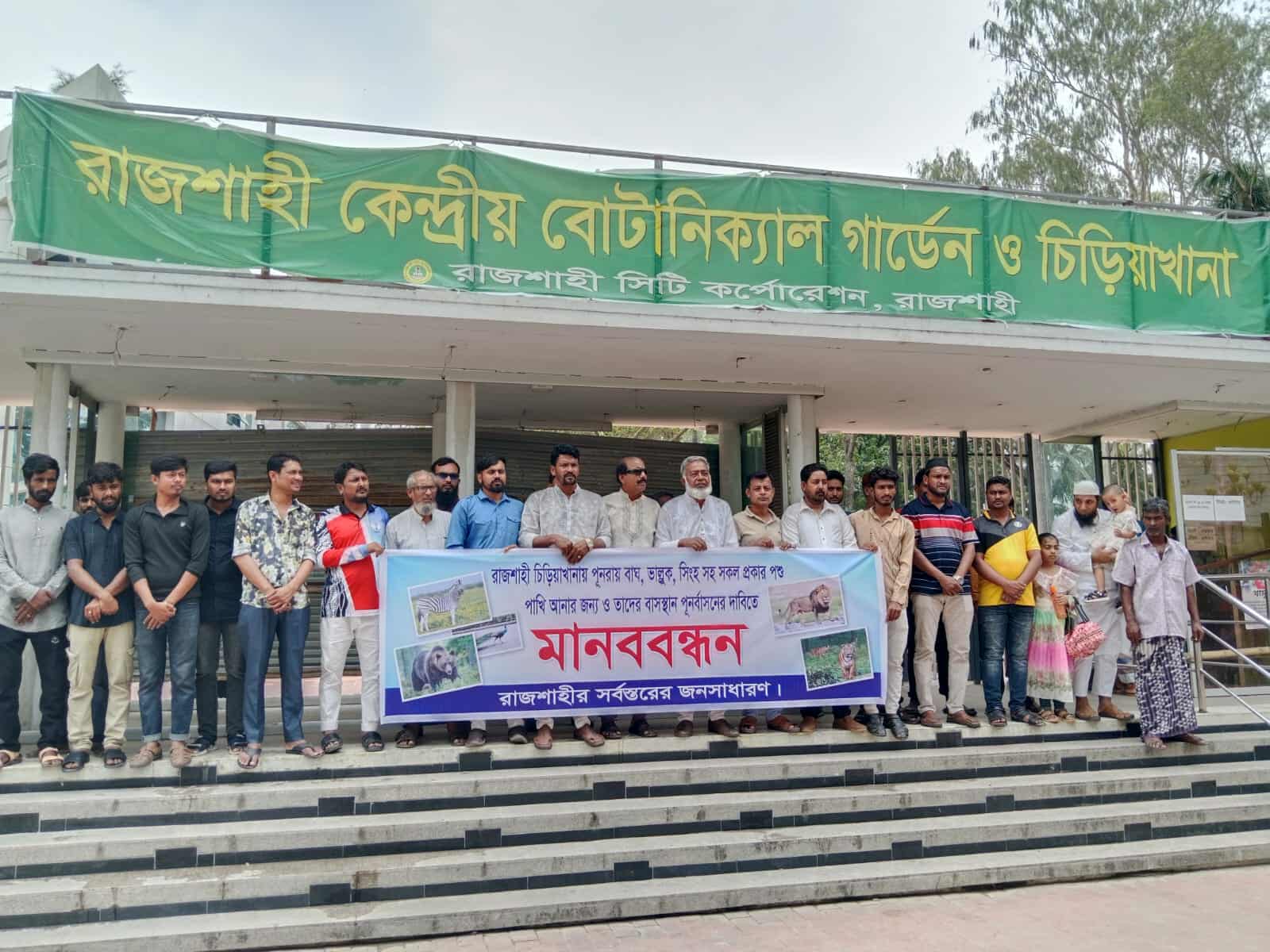 রাজশাহী চিড়িয়াখানা পুনরুদ্ধারের দাবিতে মানববন্ধন