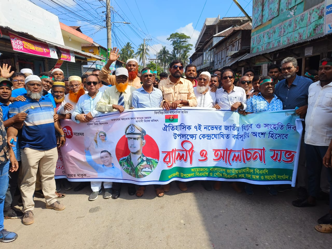 আমতলী প্রতিনিধিঃ আমতলীতে ঐতিহাসিক জাতীয় ৭ নভেম্বর বিপ্লব ও সংহতি দিবস পালন উপলক্ষে বর্নাঢ্য র্যালি ও আলোচনা সভা অনুষ্ঠিত হয়েছে।