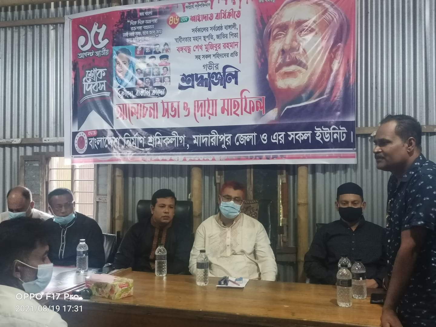 মাদারীপুরে নির্মাণ শ্রমিকলীগের উদ্যোগে বঙ্গবন্ধুর ৪৬ তম শাহাদাৎ বার্ষিকী উদযাপন