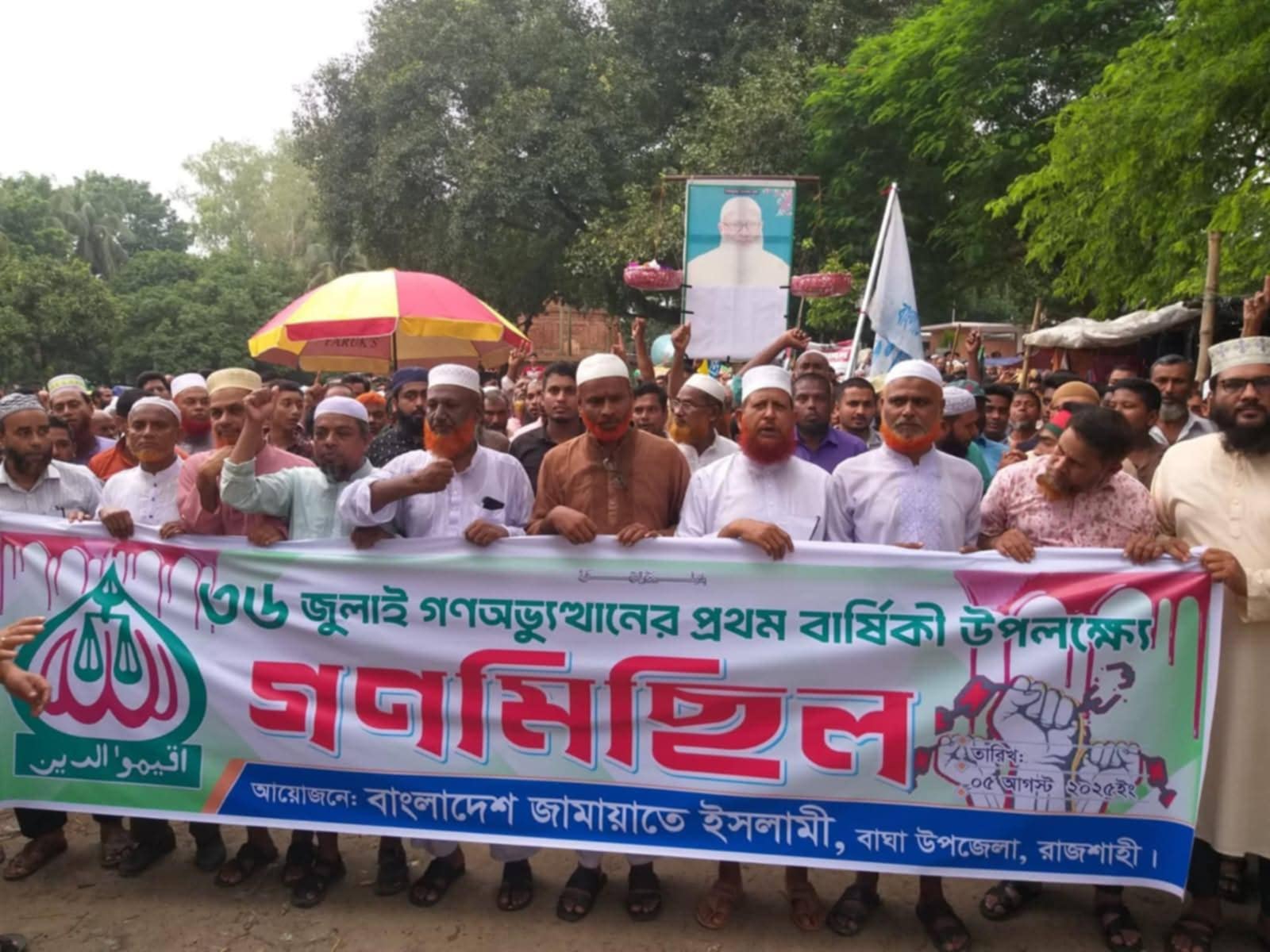 বাঘায় জুলাই গণ অভ্যুত্থানের বর্ষপূর্তিতে বিএনপি-জামায়াতের বিক্ষোভ মিছিল