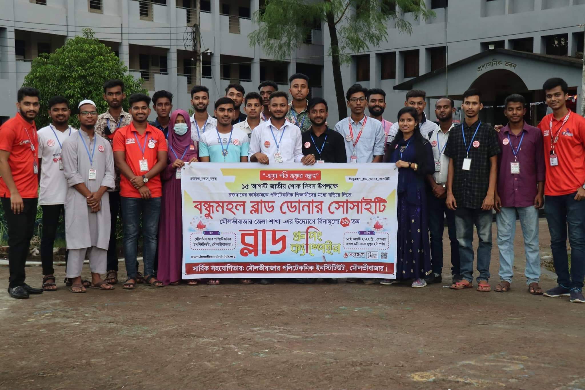 মৌলভীবাজারে শোক দিবস উপলক্ষে বন্ধুমহল ব্লাড ডোনার সোসাইটি’র বিনামূল্যে রক্তের গ্রুপ নির্ণয়