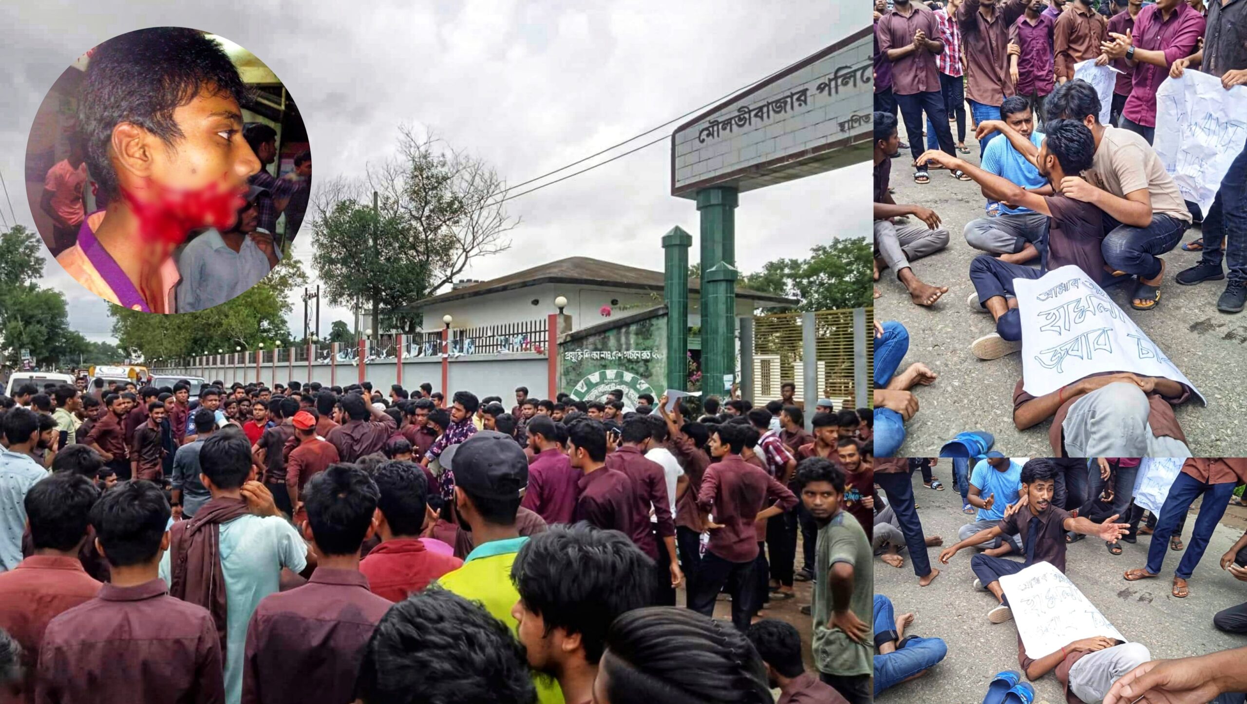 মৌলভীবাজারে পলিটেকনিক শিক্ষার্থীর ওপর হামলার প্রতিবাদে সড়ক অবরোধ