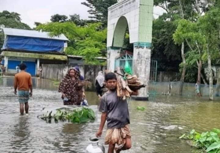 পূর্বগৌরীপুরে খেলাফত মজলিসের পক্ষ থেকে বন্যার্তদের মাঝে ত্রাণ বিতরণ