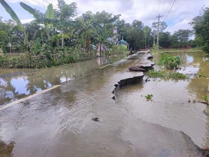 বন্যার পানিতে সড়কে ভাঙন, বালাগঞ্জ-ওসমানীনগর যোগাযোগ বিছিন্ন
